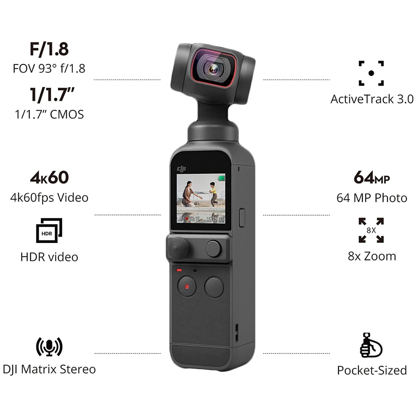 - Up to 8x Zoom, 93° Angle of View