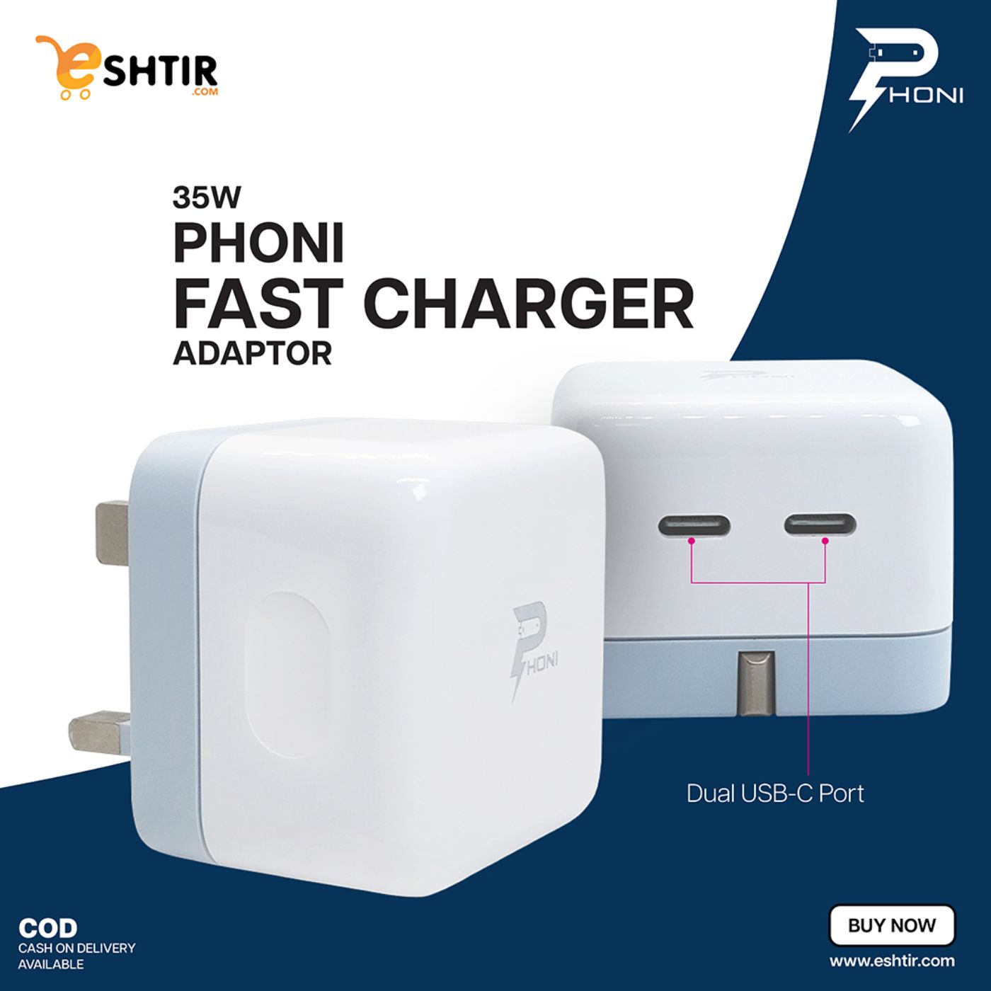 Phoni 35W Dual Port USB-C Port Wall Fast Charger Power Adaptor