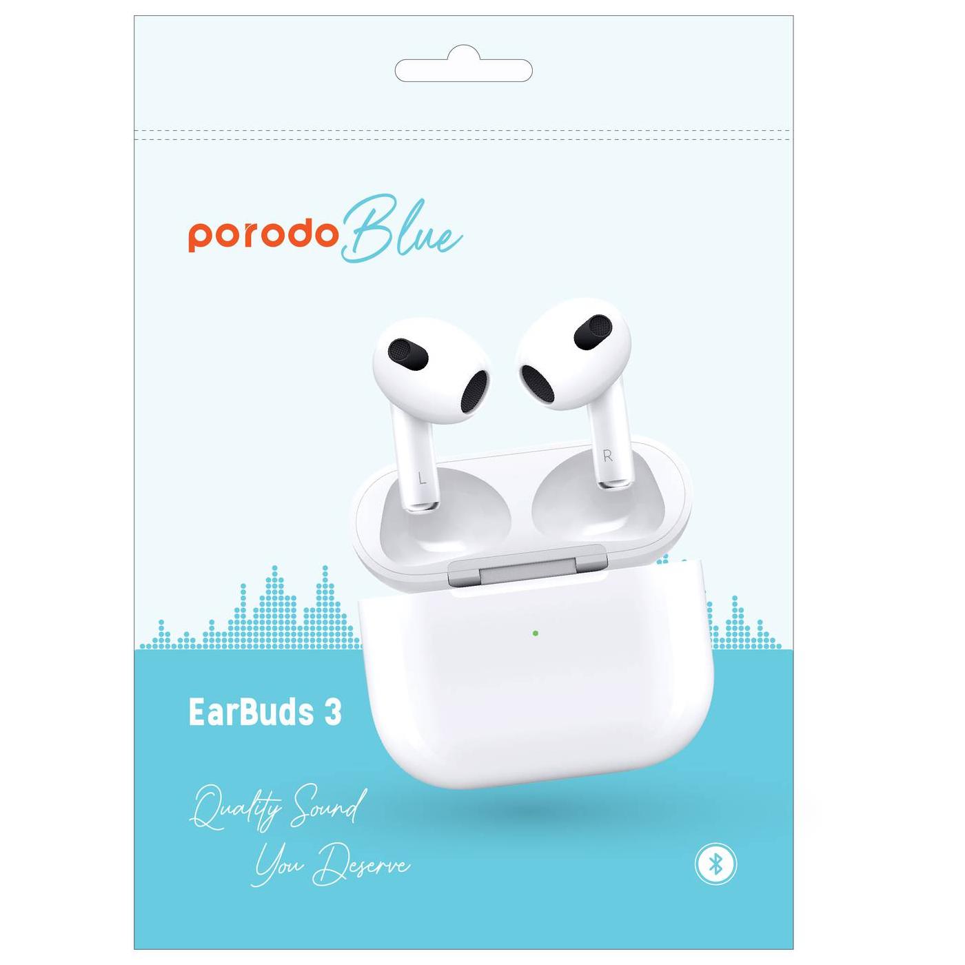 Porodo Blue Deep Bass Wireless Earbuds 3 – White