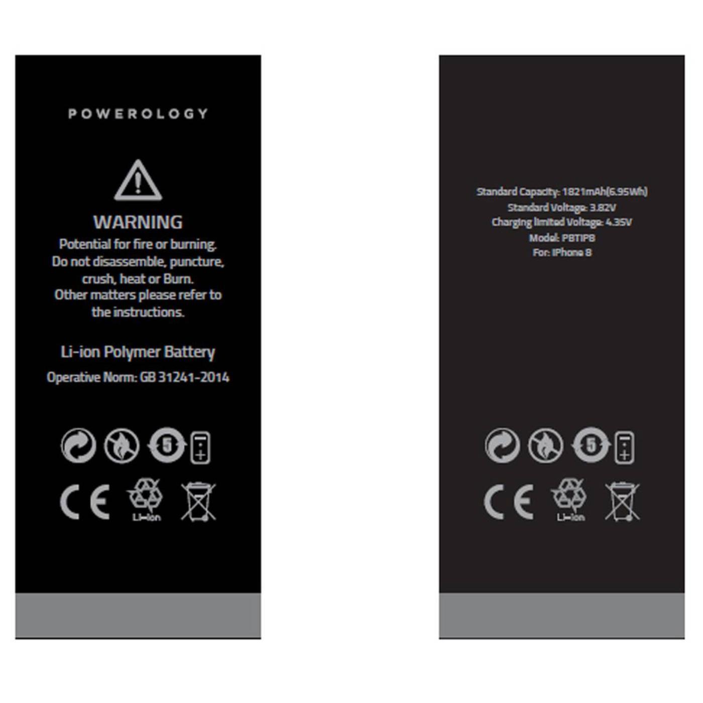 Powerology Li-ion Polymer Phone Battery 1821mAh / 6.95Wh for iPhone 8