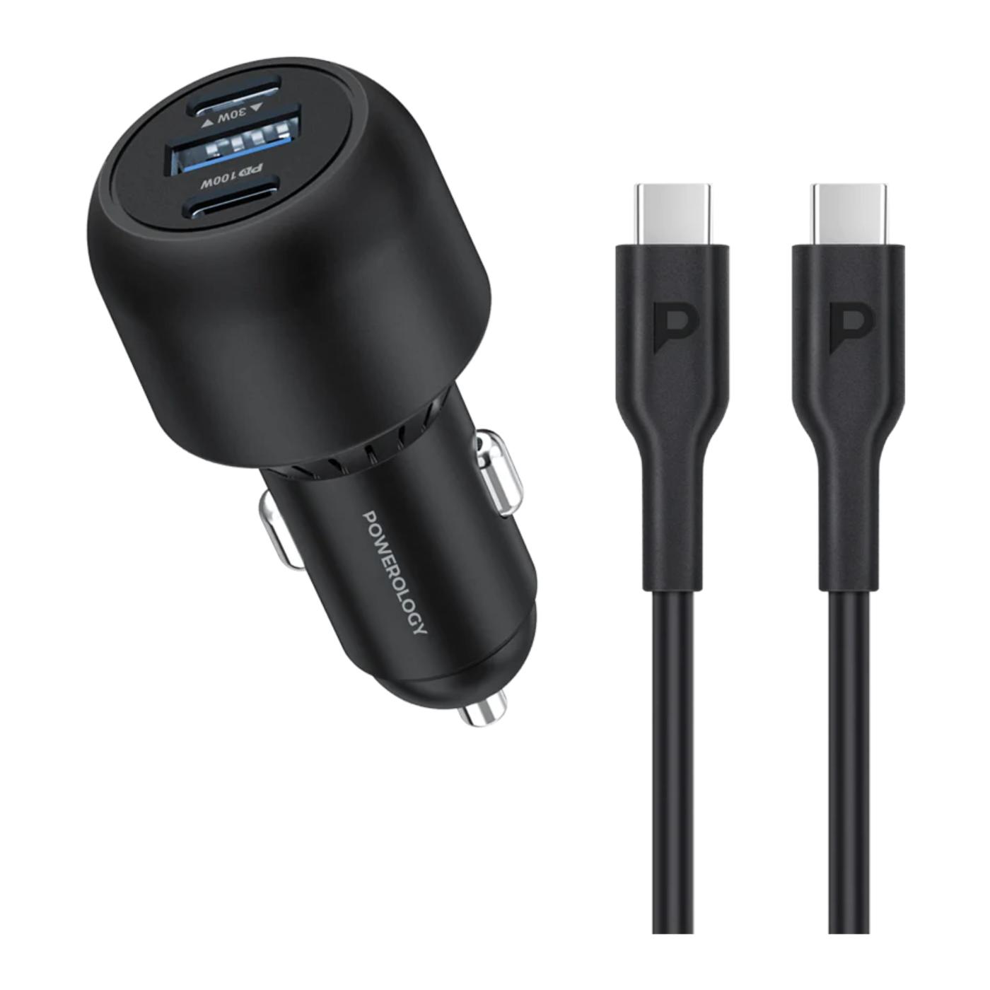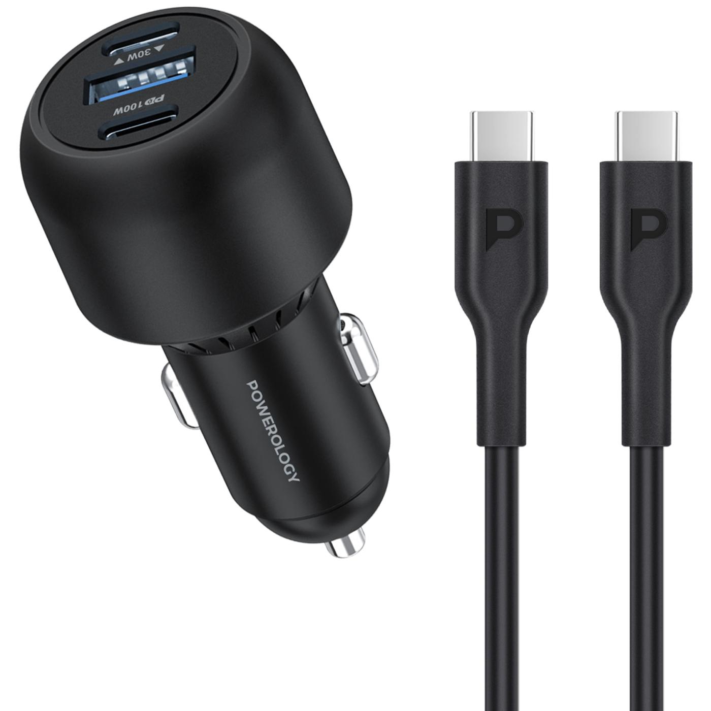 Powerology Ultra Quick Car Charger 130W with 3ft Type-C to Type-C Cable
