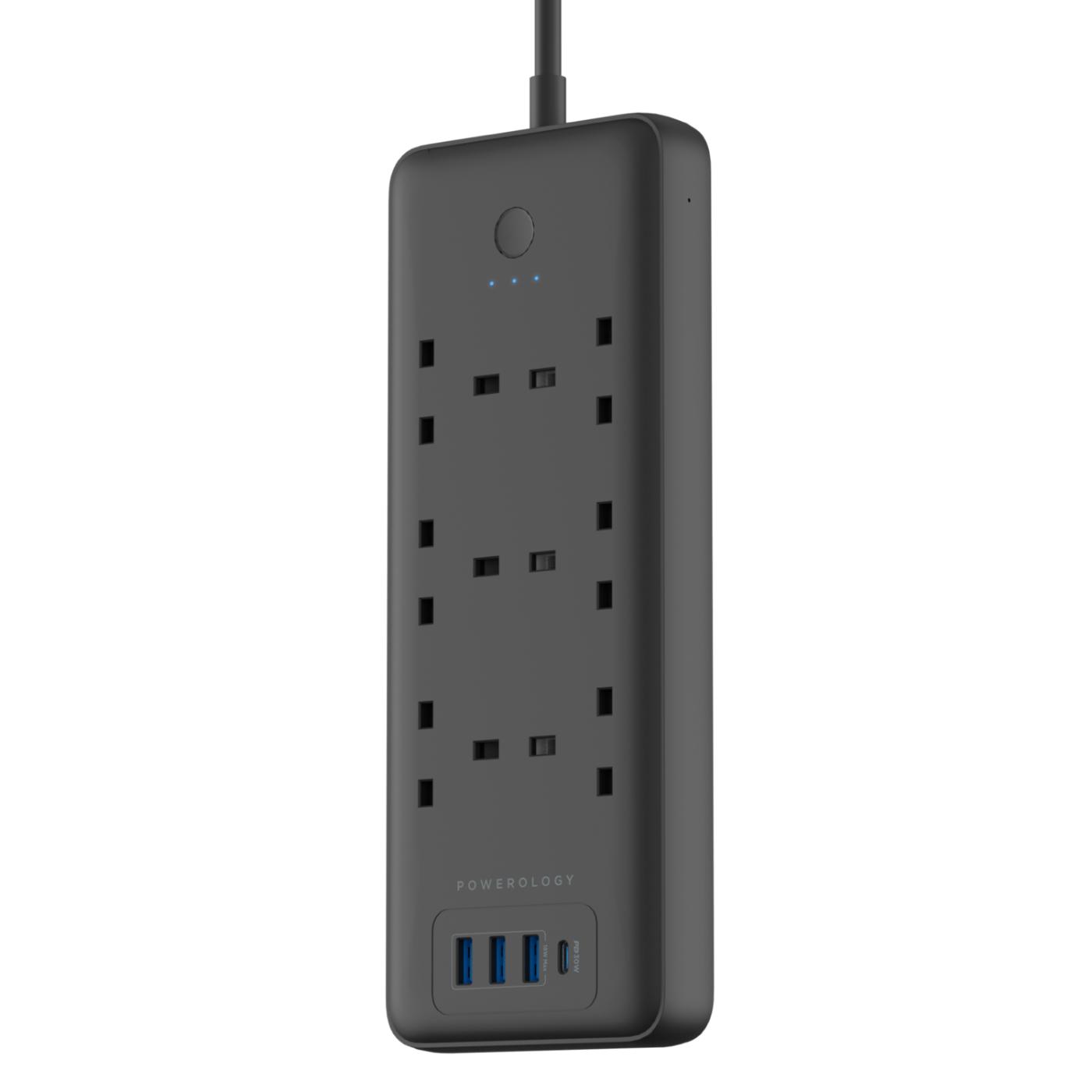 Powerology Universal Smart Power Socket with 6 AC and 3 USB and a 30W USB-C Power Socket 3 meter